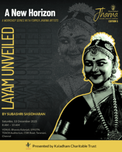 Venue: Bharata Kalanjali, SPASTN, TEACH Auditorium, CSIR Road, Taramani, Chennai